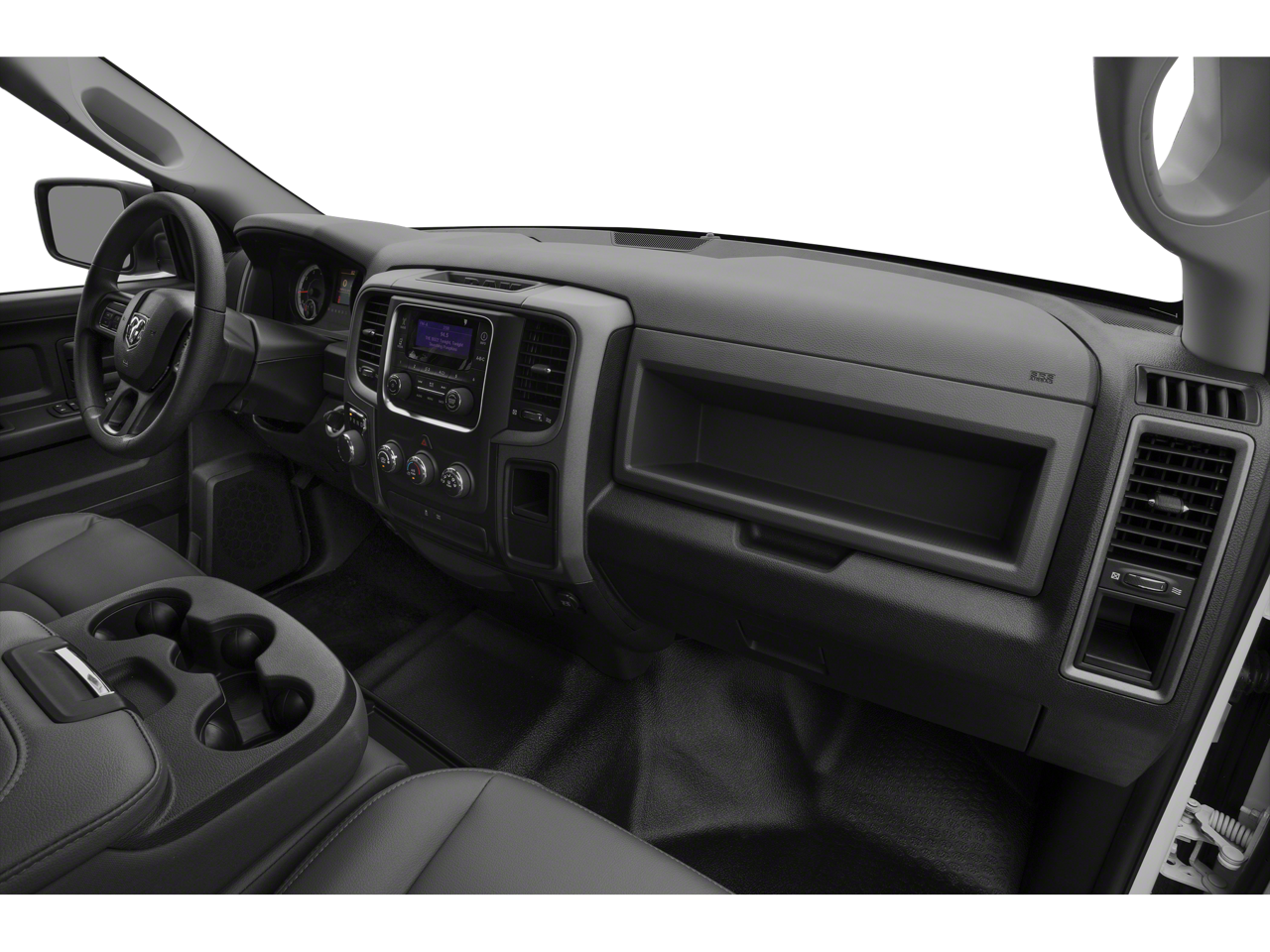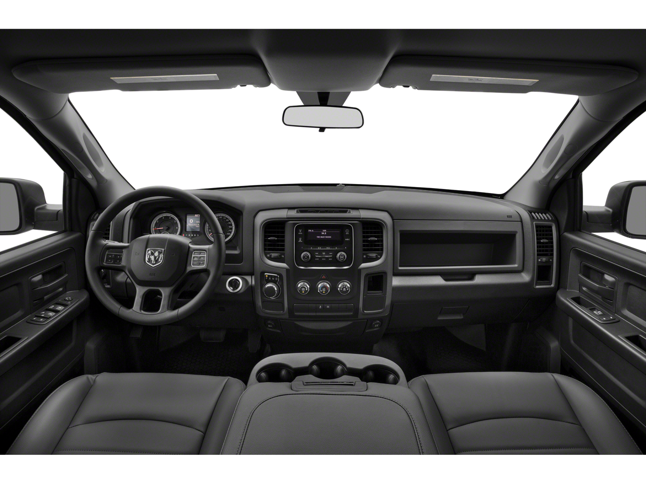 This Vehicle Includes the Following Options: Black Ram 1500 Express Group (DISC) (5.0 Touchscreen Display, Bi-Function Halogen Projector Headlamps, Black 4x4 Tailgate Badge, Black Painted Honeycomb Grille, Black Ram Head Tailgate Badge, Charge Only Remote USB Port, Delete Hemi Badge, GPS Antenna Input, Integrated Voice Command w/Bluetooth®, Media Hub (USB, AUX), Overhead Console, Radio: Uconnect 5.0 AM/FM/BT, Rear View Mirror w/Microphone, Semi-Gloss Black Hub, Sport Tail Lamps, Temperature & Compass Gauge, and Wheels: 20 x 8 Semi-Gloss Black Aluminum (DISC)), Popular Equipment Group (1-Yr SiriusXM Radio Service, 40/20/40 Split Bench Seat, Cloth 40/20/40 Bench Seat, For More Info, Call 800-643-2112, Front Armrest w/3 Cupholders, No Satellite Coverage w/AK/HI, Rear Folding Seat, Remote Keyless Entry w/All-Secure, SIRIUSXM Satellite Radio, and Storage Tray), Quick Order Package 26C Express (20 x 8 Aluminum Wheels, Body Color Front Fascia, Body Color Grille, Body Color Rear Bumper w/Step Pads, Carpet Floor Covering, Delete Class IV Receiver Hitch, Delete Spray In Bedliner, Dual Rear Exhaust w/Bright Tips, Fog Lamps, Front & Rear Floor Mats, and Ram 1500 Express), 17 x 7 Steel Wheels, 3.21 Rear Axle Ratio, 4-Wheel Disc Brakes, 6 Speakers, ABS brakes, Active Grille Shutters, Air Conditioning, AM/FM radio, Black Exterior Mirrors, Brake assist, Center Hub, Delay-off headlights, Driver door bin, Dual front impact airbags, Dual front side impact airbags, Electronic Shift, Electronic Stability Control, Exterior Mirrors w/Heating Element, Front anti-roll bar, Front Center Armrest, Front wheel independent suspension, Fully automatic headlights, Heated door mirrors, Heavy Duty Vinyl 40/20/40 Split Bench Seat, Low tire pressure warning, Occupant sensing airbag, Overhead airbag, ParkView Rear Back-Up Camera, Passenger door bin, Power door mirrors, Power steering, Power windows, Radio data system, Radio: Uconnect 3.0 AM/FM, Rear anti-roll bar, Rear seat center armrest, Rear step bumper, Rear View Auto Dim Mirror w/Display, Speed control, Tachometer, Tilt steering wheel, Tip Start, Traction control, Variably intermittent wipers, and Voltmeter.