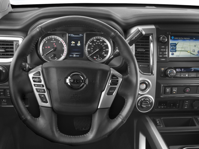 This Vehicle Includes the Following Options: 12 Speakers, 3.916 Axle Ratio, 4-Wheel Disc Brakes, ABS brakes, Air Conditioning, Alloy wheels, AM/FM radio: SiriusXM, Auto tilt-away steering wheel, Auto-dimming door mirrors, Auto-dimming Rear-View mirror, Automatic temperature control, Block heater, Brake assist, Bumpers: chrome, Carpet Floor Mats, CD player, Compass, Delay-off headlights, Driver door bin, Driver vanity mirror, Dual front impact airbags, Dual front side impact airbags, Electronic Stability Control, Emergency communication system, Front anti-roll bar, Front Bucket Seats, Front Center Armrest, Front dual zone A/C, Front fog lights, Front reading lights, Front wheel independent suspension, Garage door transmitter: HomeLink, Heated Captain's Chairs, Heated door mirrors, Heated front seats, Illuminated entry, Leather Seat Trim, Leather steering wheel, Low tire pressure warning, Memory seat, Navigation System, Occupant sensing airbag, Outside temperature display, Overhead airbag, Overhead console, Panic alarm, Passenger door bin, Passenger vanity mirror, Power door mirrors, Power driver seat, Power passenger seat, Power steering, Power windows, Radio data system, Radio: NissanConnect w/Navigation & Mobile Apps, Rain sensing wipers, Rear anti-roll bar, Rear seat center armrest, Rear step bumper, Rear window defroster, Remote keyless entry, Rockford Fosgate Premium 12 Speaker Audio System, Security system, Speed control, Speed-sensing steering, Speed-Sensitive Wipers, Split folding rear seat, Steering wheel memory, Steering wheel mounted audio controls, Tachometer, Telescoping steering wheel, Tilt steering wheel, Traction control, Turn signal indicator mirrors, Variably intermittent wipers, Voltmeter, and Wheels: 20 x 7.5 Painted Alloy.