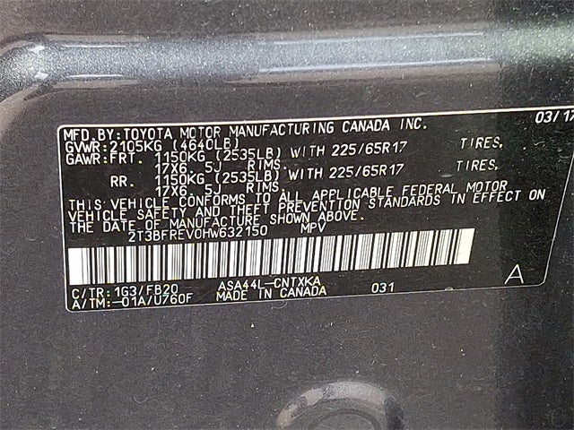 This Vehicle Includes the Following Options: AWD, Black Cloth, 4-Wheel Disc Brakes, 4.071 Axle Ratio, 6 Speakers, ABS brakes, Air Conditioning, AM/FM radio, Auto High-beam Headlights, Brake assist, Bumpers: body-color, CD player, Driver door bin, Driver vanity mirror, Dual front impact airbags, Dual front side impact airbags, Electronic Stability Control, Exterior Parking Camera Rear, Fabric Seat Trim, Four wheel independent suspension, Front anti-roll bar, Front Bucket Seats, Front Center Armrest, Front reading lights, Fully automatic headlights, Illuminated entry, Knee airbag, Low tire pressure warning, Occupant sensing airbag, Outside temperature display, Overhead airbag, Overhead console, Panic alarm, Passenger door bin, Passenger vanity mirror, Power door mirrors, Power steering, Power windows, Radio data system, Radio: Entune AM/FM/CD/MP3/WMA Playback w/6 Speakers, Rear anti-roll bar, Rear seat center armrest, Rear window defroster, Rear window wiper, Remote keyless entry, Speed control, Speed-sensing steering, Split folding rear seat, Spoiler, Steering wheel mounted audio controls, Tachometer, Telescoping steering wheel, Tilt steering wheel, Traction control, Trip computer, and Wheels: 17 x 6.5J.