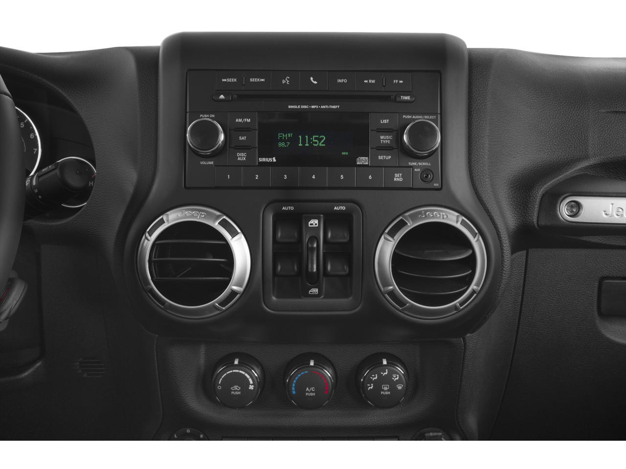 THIS VEHICLE INCLUDES THE FOLLOWING FEATURES AND OPTIONS: Connectivity Group (Tire Pressure Monitoring Display, Uconnect Voice Command w/Bluetooth®, and Vehicle Information Center), Quick Order Package 23G (Body Color Appliques Front Bumper, Body Color Appliques Rear Bumper, and Body Color/Accent Color Grille), Quick Order Package 24G, 18 x 7.5 Polished Satin Carbon Wheels, 3.21 Rear Axle Ratio, 4-Wheel Disc Brakes, 8 Speakers, ABS brakes, Air Conditioning, Alloy wheels, AM/FM radio: SiriusXM, Audio Jack Input for Mobile Devices, Auto-dimming Rear-View mirror, Black 3-Piece Hard Top, Brake assist, CD player, Cloth Seats w/Adjustable Head Restraints, Compass, Delete Sunrider Soft Top, Driver door bin, Driver Height Adjuster Seat, Driver vanity mirror, Dual front impact airbags, Electronic Stability Control, Freedom Panel Storage Bag, Front anti-roll bar, Front Bucket Seats, Front Center Armrest w/Storage, Front fog lights, Front reading lights, Front Seat Back Map Pockets, Fully automatic headlights, Heated door mirrors, Heavy Duty Suspension w/Gas Shocks, Illuminated entry, Integrated roll-over protection, Leather steering wheel, Low tire pressure warning, Manufacturer's Statement of Origin, Occupant sensing airbag, Outside temperature display, Panic alarm, Passenger door bin, Passenger vanity mirror, Power door mirrors, Power steering, Power windows, R1234YF A/C Refrigerant, Radio data system, Radio: 130, Rear anti-roll bar, Rear Window Defroster, Rear Window Wiper/Washer, Remote keyless entry, Remote Start System, Security system, Speed control, Split folding rear seat, Steering wheel mounted audio controls, Sunrider Soft Top, Tachometer, Tilt steering wheel, Traction control, Trip computer, and Variably intermittent wipers.