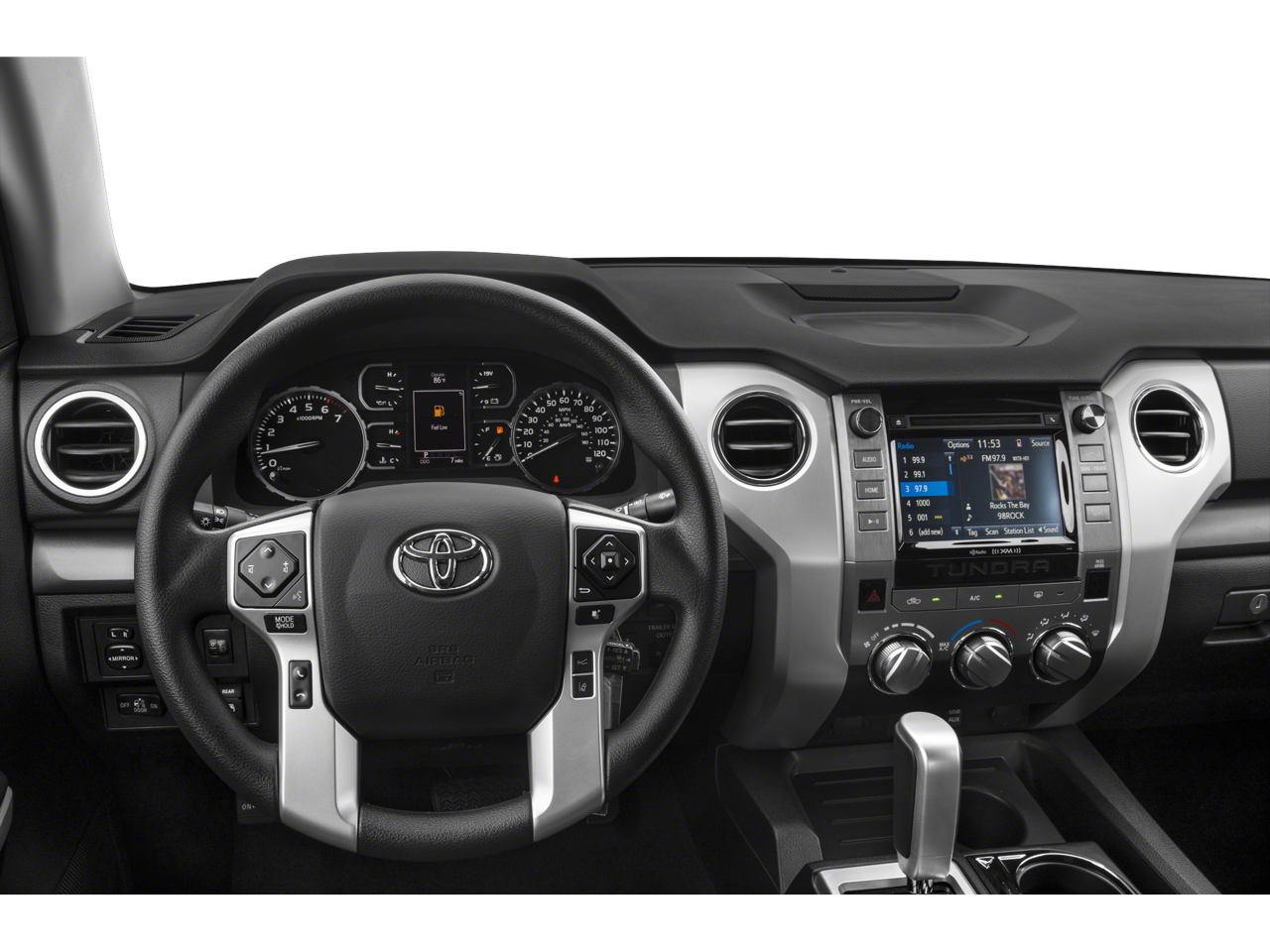 This Tundra's impressive list of features includes SiriusXM Satellite Radio, HomeLink Universal Transceiver, and LED Headlights with Smoked Housings, providing both convenience and style. The Entune App Suite and Auto-Dimming Rearview Mirror add to the premium experience, while the powerful 38-gallon fuel tank means fewer stops on the open road.