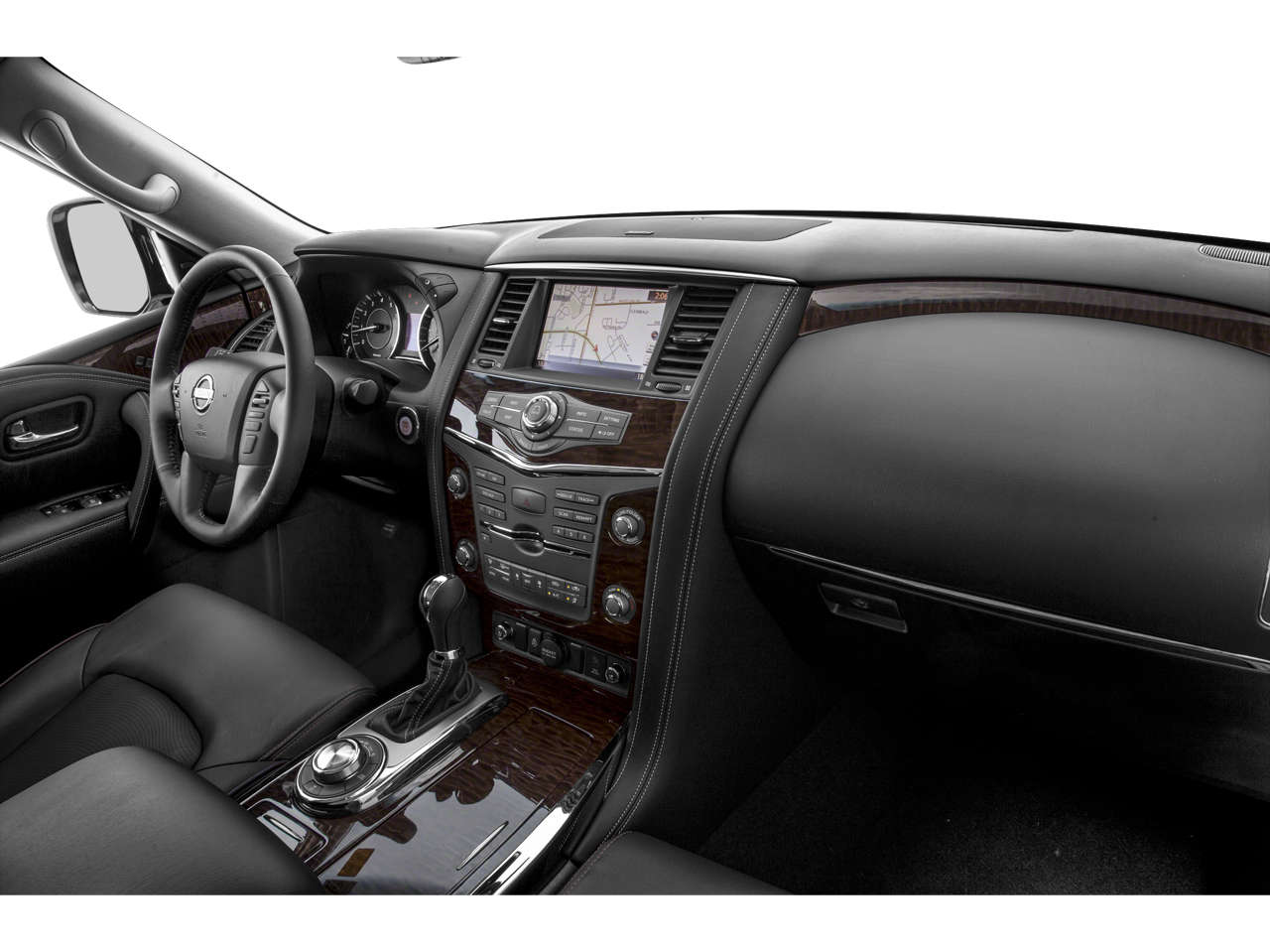 THIS VEHICLE INCLUDES THE FOLLOWING FEATURES AND OPTIONS: Captain's Chairs Package (2nd Row Captain's Chairs and 2nd Row Center Console w/ Padded Armrest), Cargo Package, Carpeted Floor Mats w/ Captain Seat Package, 4WD, 13 Speakers, 2.937 Axle Ratio, 3rd row seats: split-bench, 4-Wheel Disc Brakes, A/V remote, ABS brakes, Air Conditioning, Alloy wheels, AM/FM radio: SiriusXM, Anti-whiplash front head restraints, Auto tilt-away steering wheel, Auto-dimming door mirrors, Auto-dimming Rear-View mirror, Auto-leveling suspension, Automatic temperature control, Brake assist, Bumpers: body-color, CD player, Cross Bars, Delay-off headlights, Driver door bin, Driver vanity mirror, Dual front impact airbags, Dual front side impact airbags, Electronic Stability Control, Emergency communication system: NissanConnect Services, Four wheel independent suspension, Front anti-roll bar, Front Bucket Seats, Front Center Armrest, Front dual zone A/C, Front fog lights, Front reading lights, Fully automatic headlights, Garage door transmitter: HomeLink, Headphones, Heated & Cooled Front Bucket Seats w/Driver Memory, Heated door mirrors, Heated front seats, Heated rear seats, Heated steering wheel, Illuminated entry, Illuminated Kick Plates, Leather Shift Knob, Leather-Appointed Seat Trim, Low tire pressure warning, Memory seat, Navigation System, Occupant sensing airbag, Outside temperature display, Overhead airbag, Overhead console, Panic alarm, Passenger door bin, Passenger vanity mirror, Power door mirrors, Power driver seat, Power Liftgate, Power moonroof, Power passenger seat, Power steering, Power windows, Radio data system, Radio: AM/FM/SXM/CD/MP3/HD, Rain sensing wipers, Rear air conditioning, Rear anti-roll bar, Rear reading lights, Rear seat center armrest, Rear window defroster, Rear window wiper, Reclining 3rd row seat, Remote keyless entry, Roof rack: rails only, Security system, Speed control, Speed-sensing steering, Speed-Sensitive Wipers, Split folding rear seat, Spoiler, Steering wheel memory, Steering wheel mounted audio controls, Tachometer, Telescoping steering wheel, Tilt steering wheel, Traction control, Trip computer, Turn signal indicator mirrors, Variably intermittent wipers, Ventilated front seats, Voltmeter, Welcome Lighting, and Wheels: 20 Machine-Faced Chrome w/Tinted CC.