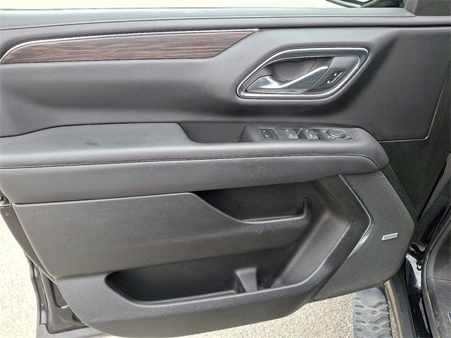 This Vehicle Includes the Following Options: Driver Alert Package (Lane Change Alert w/Side Blind Zone Alert and Rear Cross Traffic Alert), Luxury Package (2nd Row Pwr Release 60/40 Split-Folding Bench Seat, 3rd Row 60/40 Power-Folding Split-Bench Seat, HD Surround Vision, Heated 2nd Row Outboard Seats, Heated Steering Wheel, Memory Settings, Outside Heated Power-Adjustable Mirrors, Power Tilt & Telescopic Steering Column, and Rear Pedestrian Alert), Preferred Equipment Group 2Z7 (1st & 2nd Row Color-Keyed Carpeted Floor Mats, 2-Speed Active Electronic AutoTrac Transfer Case, Auto-Dimming Inside Rear-View Mirror, Black Tubular Assist Steps, Bose 9-Speaker Stereo Audio System Feature, Bright Front & Rear Door Sill Plates, Color-Keyed Carpeting Floor Covering, Driver & Front Outboard Passenger Airbags, Enhanced Driver Information Center, Floor Console w/Storage Area, Front High-Approach Angle Fascia, Hands-Free Rear Power Programmable Liftgate, Hill Descent Control, Infotainment Display, LED Daytime Running Lamps, Memory Settings for Driver, Red Horizontal-Mounted Recovery Hooks, Remote Start, SiriusXM Radio w/360L, Universal Home Remote, Wireless Charging, and Wrapped Steering Wheel), 4WD, Black Leather, 10-Way Power Driver & Passenger Seat Adjusters, 1st, 2nd & 3rd Rows All-Weather Floor Liners (LPO), 3.23 Rear Axle Ratio, 3rd row seats: split-bench, 4-Wheel Disc Brakes, 9 Speakers, ABS brakes, Air Conditioning, Alloy wheels, AM/FM radio: SiriusXM with 360L, Apple CarPlay/Android Auto, Auto High-beam Headlights, Auto-dimming Rear-View mirror, Automatic temperature control, Brake assist, Bumpers: body-color, Compass, Delay-off headlights, Driver door bin, Driver vanity mirror, Dual front impact airbags, Dual front side impact airbags, Electronic Stability Control, Emergency communication system: OnStar and Chevrolet connected services capable, Four wheel independent suspension, Front anti-roll bar, Front Bucket Seats, Front Center Armrest, Front dual zone A/C, Front High-Back Reclining Bucket Seats, Front reading lights, Fully automatic headlights, Garage door transmitter, Heated door mirrors, Heated Driver & Front Passenger Seats, Heated front seats, Illuminated entry, Leather-Appointed Seat Trim, Low tire pressure warning, Memory seat, Navigation System, Occupant sensing airbag, Outside temperature display, Overhead airbag, Overhead console, Panic alarm, Passenger door bin, Passenger vanity mirror, Power door mirrors, Power driver seat, Power Liftgate, Power passenger seat, Power Release 2nd Row Bucket Seats, Power steering, Power windows, Premium audio system: Chevrolet Infotainment 3 Premium, Premium Smooth Ride Suspension, Radio: Chevrolet Infotainment 3 Premium System, Rain sensing wipers, Rear air conditioning, Rear anti-roll bar, Rear reading lights, Rear seat center armrest, Rear window defroster, Rear window wiper, Remote keyless entry, Roof rack: rails only, Security system, Speed control, Speed-sensing steering, Split folding rear seat, Spoiler, Sport Pedal Cover Kit (LPO), Steering wheel mounted audio controls, Tachometer, Telescoping steering wheel, Tilt steering wheel, Traction control, Trip computer, Variably intermittent wipers, Voltmeter, and Wheels: 20 x 9 Machined Aluminum.