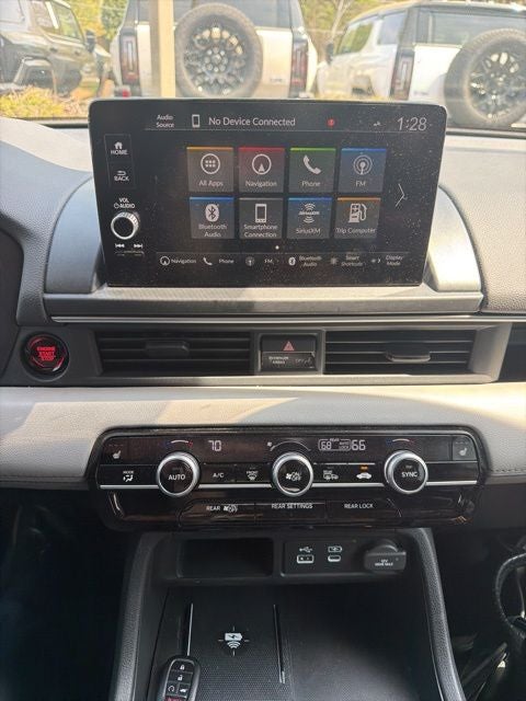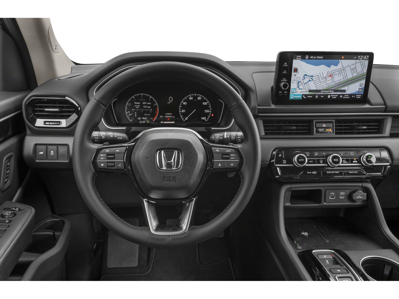 - Radio: Bose Premium Sound System -inc: 12 speakers w/subwoofer, 9" color touchscreen, Bluetooth® HandsFreeLink and streaming audio, Radio Data System (RDS), Speed-sensitive Volume Compensation (SVC), front 12-volt power outlet, wireless Apple CarPlay and Android Auto compatibility, Wi-Fi hotspot capability, Qi wireless phone charger, SMS text message function, SiriusXM (SiriusXM requires a subscription after any trial period, If you decide to continue your SiriusXM service at the end of your trial subscription, the plan you choose will automatically renew and bill at then-current rates until you call SiriusXM at 1-866-635-2349 to cancel, See our customer agreement for complete terms at www.siriusxm.com, Fees and programming subject to change, Available in the 48 contiguous United States and D.C, SiriusXM and all related marks and logos are trademarks of SiriusXM Radio Inc.), HD Radio, 2.5-amp USB type-A smartphone/audio interface port in front console, 3.0-amp USB type-C charging port in front console, Honda Satellite-Linked Navigation System w/voice recognition and Honda Real-Time Traffic (The Honda Satellite-Linked Navigation System functions in the United States (not including territories, except Puerto Rico) and Canada, Honda HD Digital Traffic service is only available in the United States, except Alaska, Please see your Honda dealer for details.), HondaLink subscription services ( complimentary trials of security for 1 year and a remote/concierge trial for 3 months, Enrollment is required to access the remote/concierge trial and to access certain features of security, At the end of each trial period, purchase of a subscription is required to continue the respective services.), multi-zone audio and CabinTalk in-car PA system