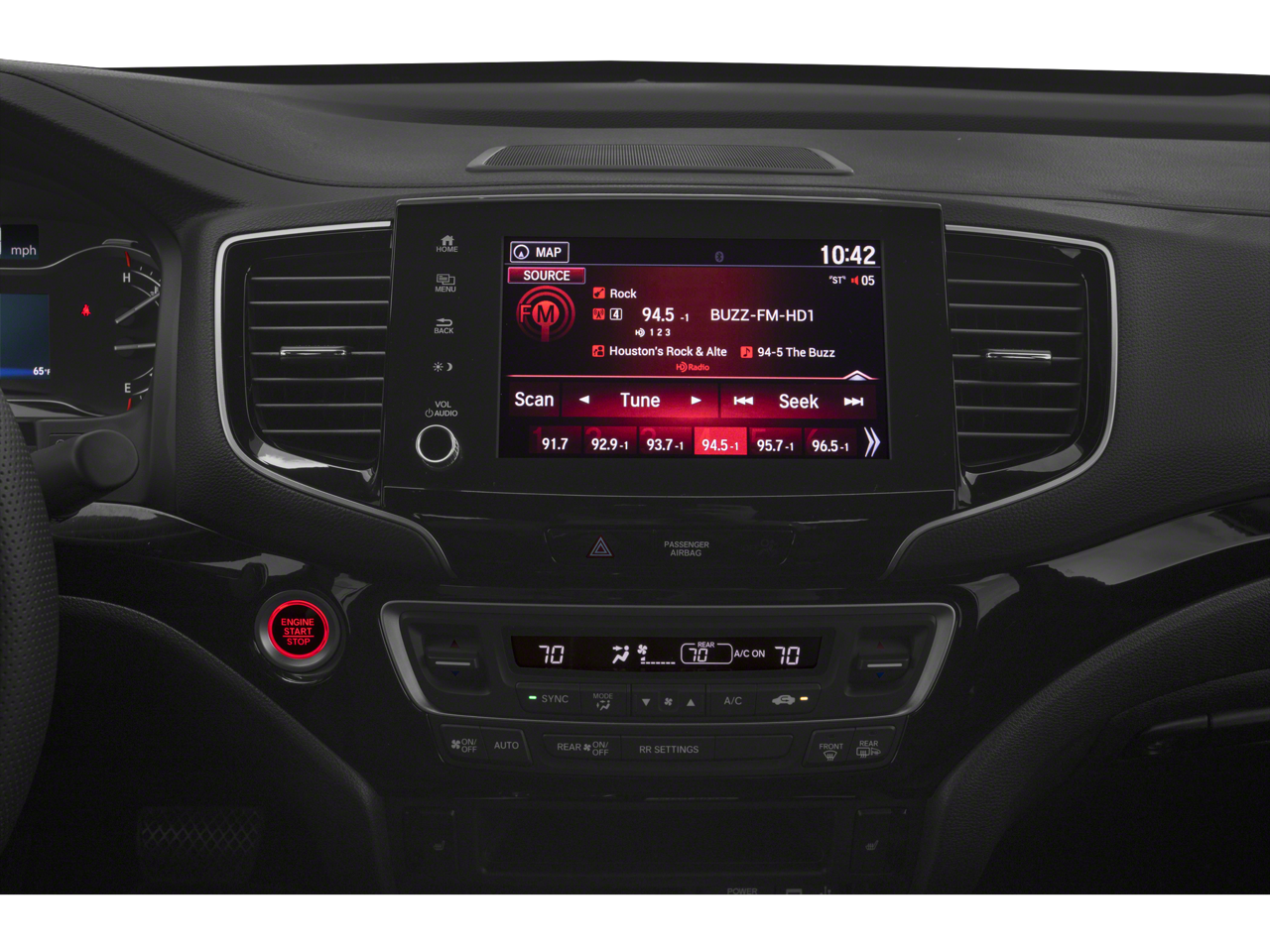 - Radio: 540-Watt Premium Audio System w/8 Speakers -inc: subwoofer, Bluetooth® streaming audio, MP3/auxiliary input jack, Radio Data System (RDS), Speed-Sensitive Volume Compensation (SVC), 8" display audio w/high-resolution electrostatic touch screen and customizable feature settings, Apple CarPlay compatibility, Android Auto compatibility, HondaLink, SMS text message function (Compatible w/select phones w/Bluetooth®, Your wireless carrier's rate plans apply, State or local laws may limit use of texting feature, Only use texting feature when conditions allow you to do so safely.), 1.5-amp USB smartphone/audio interface in front console (1 port), HD Radio, truck-bed audio system and wireless phone charger