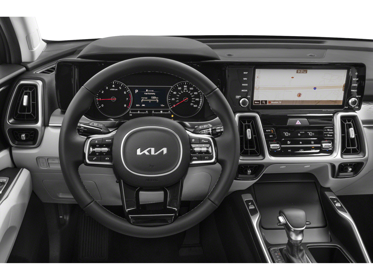 Stepping inside, you'll be greeted by a well-appointed cabin that combines style and functionality. The Sorento S offers a range of premium amenities, including dual-zone automatic climate control, a premium audio system, and a host of advanced safety features like Blind Spot Monitoring, Rear Cross-Traffic Alert, and Forward Collision-Avoidance Assist.