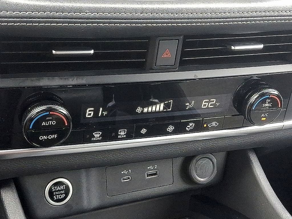 THIS VEHICLE INCLUDES THE FOLLOWING FEATURES AND OPTIONS: AWD, 18 Aluminum Alloy Wheels, 4-Wheel Disc Brakes, 5.604 Axle Ratio, 6 Speakers, ABS brakes, Air Conditioning, Alloy wheels, AM/FM Radio, AM/FM radio: SiriusXM, Auto High-beam Headlights, Automatic temperature control, Brake assist, Bumpers: body-color, Cloth Seat Trim, Delay-off headlights, Driver door bin, Driver vanity mirror, Dual front impact airbags, Dual front side impact airbags, Electronic Stability Control, Emergency communication system: NissanConnect Services, Four wheel independent suspension, Front anti-roll bar, Front Bucket Seats, Front Center Armrest, Front dual zone A/C, Front reading lights, Fully automatic headlights, Heated door mirrors, Illuminated entry, Knee airbag, Low tire pressure warning, NissanConnect featuring Apple CarPlay and Android Auto, Occupant sensing airbag, Outside temperature display, Overhead airbag, Overhead console, Panic alarm, Passenger door bin, Passenger vanity mirror, Power door mirrors, Power driver seat, Power steering, Power windows, Radio data system, Rear anti-roll bar, Rear Parking Sensors, Rear seat center armrest, Rear side impact airbag, Rear window defroster, Rear window wiper, Remote keyless entry, Speed control, Speed-Sensitive Wipers, Split folding rear seat, Spoiler, Steering wheel mounted audio controls, Tachometer, Telescoping steering wheel, Tilt steering wheel, Traction control, Trip computer, and Variably intermittent wipers. 28/35 City/Highway MPG