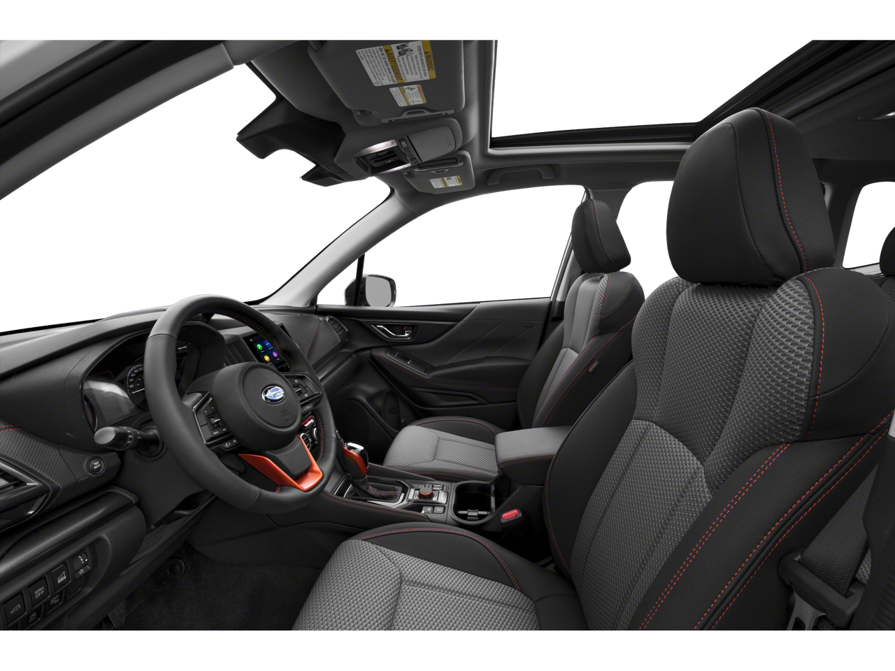 This vehicle includes the following features: 8 Audio w/harman/kardon & RAB & Power Rear Gate (Power Rear Gate, Radio: Subaru Starlink 8.0 Multimedia Plus System, and Reverse Automatic Braking System (RAB)), 3.70 Axle Ratio, 4-Wheel Disc Brakes, 6 Speakers, ABS brakes, Air Conditioning, Alloy wheels, AM/FM radio: SiriusXM, Anti-whiplash front head restraints, Auto High-beam Headlights, Automatic temperature control, Brake assist, Bumpers: body-color, CD player, Driver door bin, Driver vanity mirror, Dual front impact airbags, Dual front side impact airbags, Electronic Stability Control, Emergency communication system: STARLINK Safety and Security (Subscription Required), Exterior Parking Camera Rear, Four wheel independent suspension, Front anti-roll bar, Front Bucket Seats, Front Center Armrest, Front fog lights, Front reading lights, Fully automatic headlights, Heated door mirrors, Heated Front Bucket Seats, Heated front seats, Illuminated entry, Knee airbag, Leather Shift Knob, Low tire pressure warning, Occupant sensing airbag, Outside temperature display, Overhead airbag, Overhead console, Panic alarm, Passenger door bin, Passenger vanity mirror, Power door mirrors, Power driver seat, Power moonroof: Panoramic, Power steering, Power windows, Radio data system, Radio: Subaru Starlink 6.5 Multimedia Plus System, Rear anti-roll bar, Rear seat center armrest, Rear window defroster, Rear window wiper, Remote keyless entry, Roof rack: rails only, Security system, Speed control, Speed-sensing steering, Split folding rear seat, Spoiler, Sport Cloth Upholstery, STARLINK/Apple CarPlay/Android Auto, Steering wheel mounted audio controls, Tachometer, Telescoping steering wheel, Tilt steering wheel, Traction control, Trip computer, Turn signal indicator mirrors, Variably intermittent wipers, and Wheels: 18 x 7.0 J Black Finish Aluminum-Alloy.