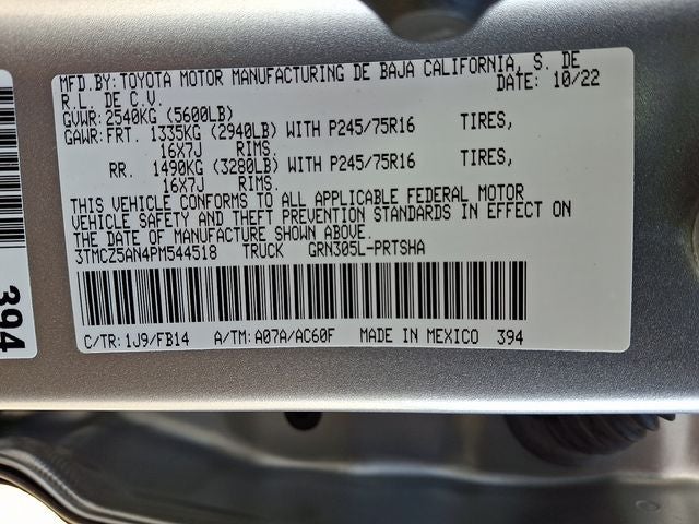 - Vehicle Name: Toyota Tacoma 4WD