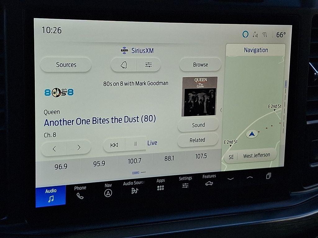 - SYNC 4 w/Enhanced Voice Recognition -inc: 12" LCD capacitive touchscreen w/swipe capability, information on demand panel, wireless phone connection, cloud connected, AppLink w/app catalog, 911 Assist, Apple CarPlay and Android Auto compatibility, digital owner's manual, conversational voice command recognition and connected navigation w/complimentary 1-year trial for eligible vehicles that begins on the new vehicle warranty start date, Customers must unlock the navigation service trial by activating the eligible vehicle w/a FordPass member account, If not subscribed by the end of the complimentary period, the connected navigation service will terminate, and the system will revert to embedded offline navigation, Navigation services require SYNC4 and Ford Pass Connect (optional on select vehicles), complimentary connect service and the FordPass app (see FordPass terms for details), Connected service and features depend on compatible AT&T network availability, Evolving technology/cellular networks/vehicle capability may limit functionality and prevent operation of connected features, FordPass app, compatible w/select smartphone platforms, is available via a download, Message and data rates may apply