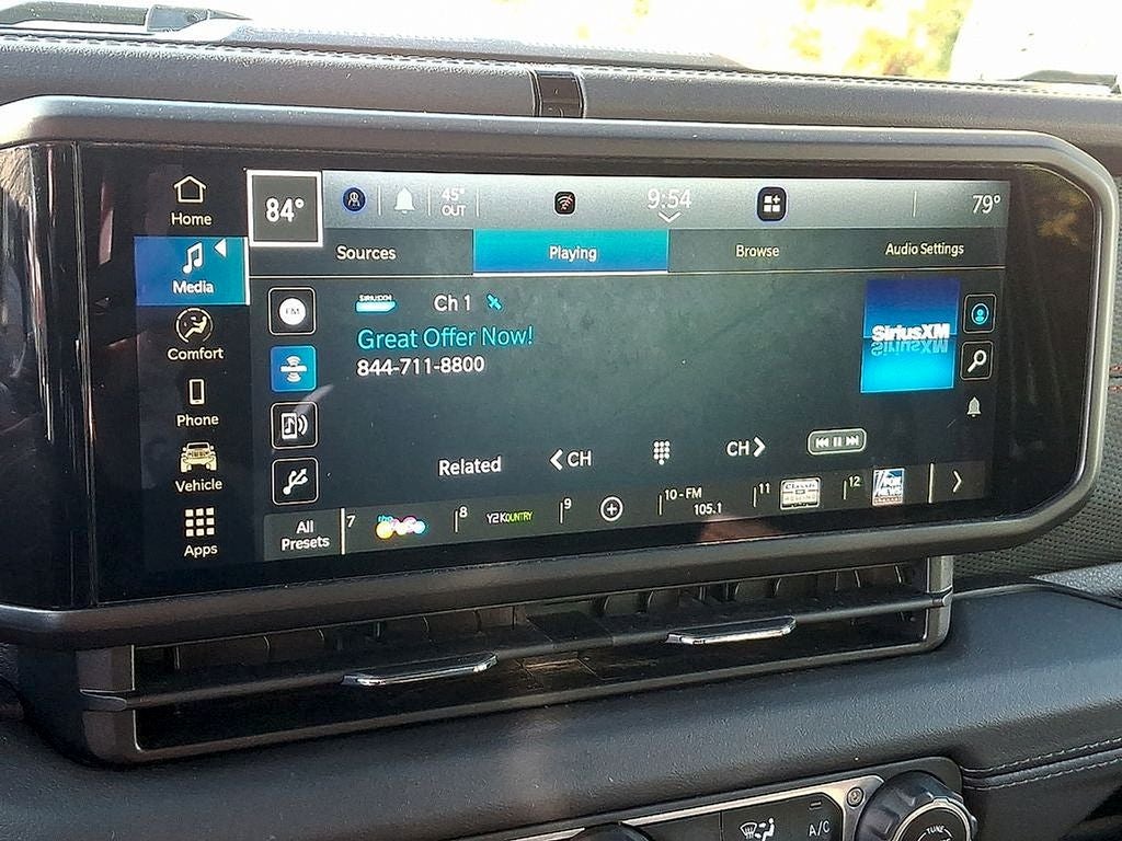 THIS VEHICLE INCLUDES THE FOLLOWING FEATURES AND OPTIONS: Quick Order Package 24R Rubicon, 12.3 Touchscreen Display, 4-Wheel Disc Brakes, 4.10 Rear Axle Ratio, 8 Speakers, 97 MPH Vehicle Max Speed Calibration, ABS brakes, Air Conditioning, Alloy wheels, AM/FM radio: SiriusXM, Apple CarPlay, Apple CarPlay/Android Auto, Automatic temperature control, Aux Battery, Black 3-Piece Hard Top, Brake assist, Cloth Low-Back Bucket Seats, Compass, Connectivity - US/Canada, Delay-off headlights, Disassociated Touchscreen Display, Driver door bin, Driver vanity mirror, Dual front impact airbags, Dual front side impact airbags, Electronic Stability Control, Emergency communication system: Jeep Connect, Freedom Panel Storage Bag, Front anti-roll bar, Front Bucket Seats, Front Center Armrest w/Storage, Front dual zone A/C, Front fog lights, Front License Plate Bracket, Front reading lights, Fully automatic headlights, Google Android Auto, Heated door mirrors, Illuminated entry, Integrated Center Stack Radio, Integrated roll-over protection, Integrated Voice Command w/Bluetooth®, Low tire pressure warning, No Soft Top, Non-Lock Fuel Cap w/o Discriminator, Occupant sensing airbag, Outside temperature display, Overhead airbag, Panic alarm, ParkView Rear Back-Up Camera, Passenger door bin, Passenger vanity mirror, Performance Suspension, Power door mirrors, Power steering, Power windows, Radio data system, Radio: Uconnect 5 w/12.3 Display, Rear anti-roll bar, Rear reading lights, Rear Window Defroster, Rear Window Wiper/Washer, Remote keyless entry, Security system, Speed control, Split folding rear seat, Steering wheel mounted audio controls, Stop-Start Dual Battery System, Tachometer, Telescoping steering wheel, Tilt steering wheel, Traction control, Trip computer, Variably intermittent wipers, Voltmeter, and Wheels: 17 x 7.5 Machined/Painted Black.