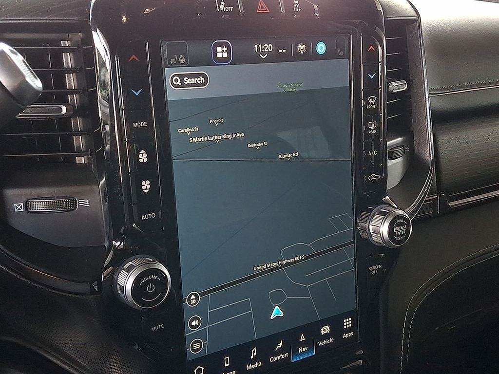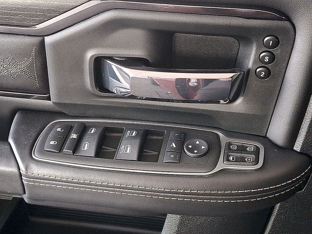 THIS VEHICLE INCLUDES THE FOLLOWING FEATURES AND OPTIONS: Limited Level 1 Equipment Group (12 Touchscreen Display, 17 Speaker harman/kardon Premium Sound, 4G LTE Wi-Fi Hot Spot, Adaptive Cruise Control w/Stop, Adaptive Steering System, Alexa Built-In, Apple CarPlay, Center Hub, Connected Travel & Traffic Services, Connectivity - US/Canada, CTR Stop Lamp w/Cargo View Camera, Digital Rearview Mirror, Disassociated Touchscreen Display, For Details Visit DriveUconnect.com, For More Info, Call 800-643-2112, Full Speed Forward Collision Warning Plus, Global Telematics Box Module (TBM), Google Android Auto, GPS Antenna Input, GPS Navigation, HD Radio, Integrated Voice Command w/Bluetooth®, Lane Keep Assist, LED Bed Lighting, MOPAR Spray In Bedliner, Off-Road Information Pages, Power Deployable Running Boards, Radio: Uconnect 5 Nav w/12.0 Display, Ramcharger Wireless Charging Pad, Selectable Tire Fill Alert, SiriusXM Radio Service, SiriusXM w/360L, Surround View Camera System, Trailer Reverse Guidance, Trailer Tow Pages, and Wheels: 20 x 8.0 Satin Carbon w/Chrome Insert), Night Edition (Black Exterior Truck Badging, Black Headlamp Bezels, Black Limited Grille, Black RAM Head Tailgate Badge, Black Tail Lamp Bezels, Black Wheel Center Hub, Body Color Grille Surround, and Sport Performance Hood), Protection Group, Quick Order Package 21M Limited, 10 Speakers, 220 Amp Alternator, 3.73 Axle Ratio, 4-Wheel Disc Brakes, 50 Gallon Fuel Tank, 5th Wheel/Gooseneck Towing Prep Group, 8.4 Touchscreen Display, ABS brakes, Active Noise Control System, Adjustable pedals, Air Conditioning, Alloy wheels, AM/FM radio: SiriusXM with 360L, Apple CarPlay/Android Auto, Audio memory, Auto High-beam Headlights, Auto Level Rear Air Suspension, Auto-dimming door mirrors, Auto-dimming Rear-View mirror, Automatic temperature control, Bodyside moldings, Brake assist, Bumpers: body-color, Compass, Delay-off headlights, Driver door bin, Driver vanity mirror, Dual front impact airbags, Dual front side impact airbags, Electronic Stability Control, Electronically Controlled Throttle, Front anti-roll bar, Front Bucket Seats, Front Center Armrest w/Storage, Front dual zone A/C, Front fog lights, Front reading lights, Fully automatic headlights, Garage door transmitter, Genuine wood console insert, Genuine wood dashboard insert, Genuine wood door panel insert, Heated door mirrors, Heated front seats, Heated rear seats, Heated steering wheel, Illuminated entry, Instrument Cluster Theme 8, Integrated Center Stack Radio, Leather steering wheel, Limited Leather Bucket Seats, Low tire pressure warning, Luxury Door Trim Panel (CTH), Memory seat, Navigation System, Occupant sensing airbag, Outside temperature display, Overhead airbag, Overhead console, Panic alarm, ParkView Rear Back-Up Camera, Passenger door bin, Passenger vanity mirror, Pedal memory, Power door mirrors, Power driver seat, Power passenger seat, Power steering, Power windows, Radio data system, Radio: Uconnect 5 Nav w/8.4 Display, Rain sensing wipers, Rear reading lights, Rear seat center armrest, Rear step bumper, Rear window defroster, Remote keyless entry, Security system, Speed control, Split folding rear seat, Steering wheel mounted audio controls, Tachometer, Tilt steering wheel, Tip Start, Traction control, Trip computer, Turn signal indicator mirrors, Variably intermittent wipers, Ventilated front seats, Voltmeter, Wheels: 20 x 8.0 Cast Aluminum Black, and Wheels: 20 x 8.0 Diamond Cut Face Aluminum.
