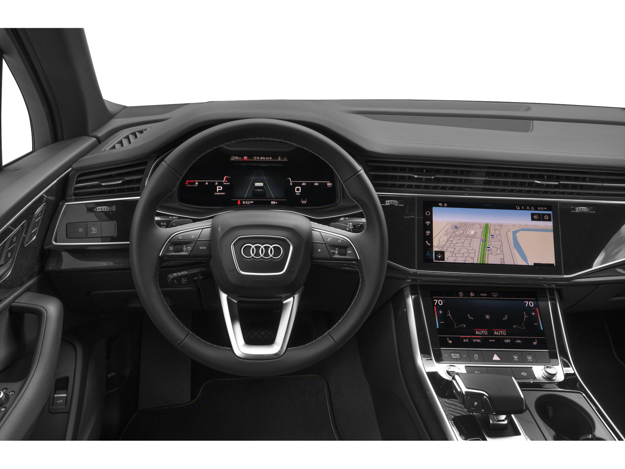 THIS VEHICLE INCLUDES THE FOLLOWING FEATURES AND OPTIONS: 10 Speakers, 3rd row seats: bench, 4-Wheel Disc Brakes, ABS brakes, Air Conditioning, Alloy wheels, AM/FM radio: SiriusXM w/360L, Auto High-beam Headlights, Auto-dimming door mirrors, Auto-dimming Rear-View mirror, Automatic temperature control, Brake assist, Bumpers: body-color, Compass, Delay-off headlights, Driver door bin, Driver vanity mirror, Dual front impact airbags, Dual front side impact airbags, Electronic Stability Control, Emergency communication system: Audi connect CARE, Exterior Parking Camera Rear, Four wheel independent suspension, Front anti-roll bar, Front Bucket Seats, Front Center Armrest, Front dual zone A/C, Front fog lights, Front reading lights, Fully automatic headlights, Garage door transmitter: HomeLink, Genuine wood door panel insert, Heated door mirrors, Heated Front Bucket Seats, Heated front seats, Illuminated entry, Leather Seating Surfaces, Leather Shift Knob, Leather steering wheel, Low tire pressure warning, Memory seat, Navigation system: Audi MMI Navigation plus with Touch Response, Occupant sensing airbag, Outside temperature display, Overhead airbag, Overhead console, Panic alarm, Passenger door bin, Passenger vanity mirror, Power door mirrors, Power driver seat, Power Liftgate, Power moonroof: Panoramic, Power passenger seat, Power steering, Power windows, Radio data system, Radio: Audi Sound System, Rain sensing wipers, Rear air conditioning, Rear anti-roll bar, Rear fog lights, Rear reading lights, Rear seat center armrest, Rear side impact airbag, Rear window defroster, Rear window wiper, Reclining 3rd row seat, Remote keyless entry, Security system, Speed control, Speed-sensing steering, Split folding rear seat, Spoiler, Steering wheel memory, Steering wheel mounted audio controls, Tachometer, Telescoping steering wheel, Tilt steering wheel, Traction control, Trip computer, Turn signal indicator mirrors, Variably intermittent wipers, and Wheels: 19 5-Arm-Star Design.