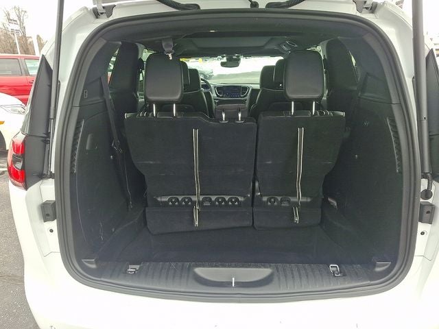 THIS VEHICLE INCLUDES THE FOLLOWING FEATURES AND OPTIONS: Quick Order Package 27P, 13 Speakers, 3.25 Axle Ratio, 3rd row seats: split-bench, 4-Wheel Disc Brakes, ABS brakes, Air Conditioning, Alloy wheels, AM/FM radio: SiriusXM 360L, Apple CarPlay/Android Auto, Audio memory, Auto-dimming Rear-View mirror, Automatic temperature control, Black Seats, Brake assist, Bumpers: body-color, Compass, Delay-off headlights, Driver door bin, Driver vanity mirror, Driver's Seat Mounted Armrest, Dual front impact airbags, Dual front side impact airbags, Electronic Stability Control, Emergency communication system: Chrysler Connect, Four wheel independent suspension, Front anti-roll bar, Front Bucket Seats, Front dual zone A/C, Front fog lights, Front reading lights, Fully automatic headlights, Garage door transmitter, Heated door mirrors, Heated front seats, Heated rear seats, Heated steering wheel, Illuminated entry, Integrated Active Noise Cancellation, Knee airbag, Low tire pressure warning, Manufacturer's Statement of Origin, Memory seat, Nappa Leather Bucket Seats with S Logo, Navigation System, Occupant sensing airbag, Outside temperature display, Overhead airbag, Overhead console, Panic alarm, ParkView Rear Back-Up Camera, Passenger door bin, Passenger seat mounted armrest, Passenger vanity mirror, Power door mirrors, Power driver seat, Power Liftgate, Power moonroof, Power passenger seat, Power steering, Power windows, Radio data system, Radio: Uconnect 5 Nav with 10.1 Display, Rain sensing wipers, Rear air conditioning, Rear reading lights, Rear window defroster, Rear window wiper, Reclining 3rd row seat, Remote keyless entry, Roof rack, Security system, Speed control, Split folding rear seat, Spoiler, Steering wheel mounted audio controls, Tachometer, Telescoping steering wheel, Tilt steering wheel, Touring Suspension, Traction control, Trip computer, Turn signal indicator mirrors, Variably intermittent wipers, Ventilated front seats, Voltmeter, and Wheels: 20 x 7.5 S-Model Aluminum Design 1.