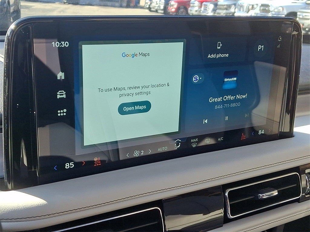 This Vehicle Includes the Following Options: Equipment Group 200A (Advanced Heads-Up Display, Auto Air Refresh, Lincoln BlueCruise Equipped (4-Years Included), and Wireless Charging Pad), Illumination Package (Adaptive Dynamic Bending Lighting, Adaptive Pixel LED Headlamps, Illuminated Lincoln Star in Grille, Lincoln Dynamic Signature Lighting, and Speed Dependent Lighting), 14 Speakers, 3rd row seats: split-bench, 4-Wheel Disc Brakes, 40/Mini Console/40 Dual Captain's Chairs, ABS brakes, Adaptive suspension, Air Conditioning, All-Weather 1st & 2nd Row Floor Liners (16A), Alloy wheels, AM/FM radio: SiriusXM, Apple CarPlay/Android Auto, Audio memory, Auto High-beam Headlights, Auto-dimming door mirrors, Auto-dimming Rear-View mirror, Automatic temperature control, Brake assist, Bumpers: body-color, Compass, Delay-off headlights, Driver door bin, Driver vanity mirror, Dual front impact airbags, Dual front side impact airbags, Electronic Stability Control, Emergency communication system: 911 Assist, Four wheel independent suspension, Front anti-roll bar, Front Bucket Seats, Front Center Armrest, Front dual zone A/C, Front reading lights, Fully automatic headlights, Garage door transmitter, Genuine wood console insert, Genuine wood dashboard insert, Heads-Up Display, Heated door mirrors, Heated front seats, Heated steering wheel, HVAC memory, Illuminated entry, Knee airbag, Leather steering wheel, Lincoln Digital Experience, Low tire pressure warning, Memory seat, Navigation system: Connected Navigation (1-year trial), Occupant sensing airbag, Outside temperature display, Overhead airbag, Overhead console, Panic alarm, Passenger door bin, Passenger vanity mirror, Power door mirrors, Power driver seat, Power Liftgate, Power moonroof: Panoramic Vista Roof, Power passenger seat, Power steering, Power windows, Premium Lthr Heated/Ventilated Fnt Captain's Chairs, Radio data system, Radio: Revel Audio System w/14 Speakers, Rain sensing wipers, Rear air conditioning, Rear anti-roll bar, Rear audio controls, Rear dual zone A/C, Rear reading lights, Rear window defroster, Rear window wiper, Remote keyless entry, Security system, SiriusXM, Speed control, Speed-Sensitive Wipers, Split folding rear seat, Spoiler, Steering wheel memory, Steering wheel mounted A/C controls, Steering wheel mounted audio controls, Tachometer, Telescoping steering wheel, Tilt steering wheel, Traction control, Trip computer, Turn signal indicator mirrors, Variably intermittent wipers, Ventilated front seats, and Wheels: 21 Bright-Machined Aluminum.